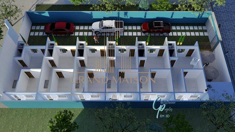 12 apartamentos compostos com sala, cozinha, quarto, banheiro, área de serviço, garagem e cisterna.