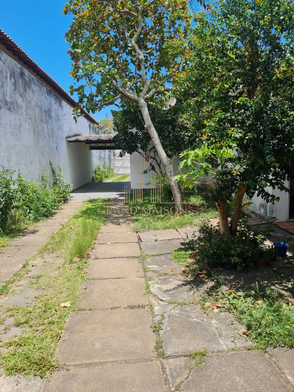 Área externa na frente e fundos com árvores frutíferas